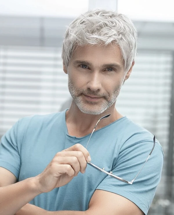 George 5-Stars is een synthetische herenpruik van Ellen Wille, volledig handgeknoopt.