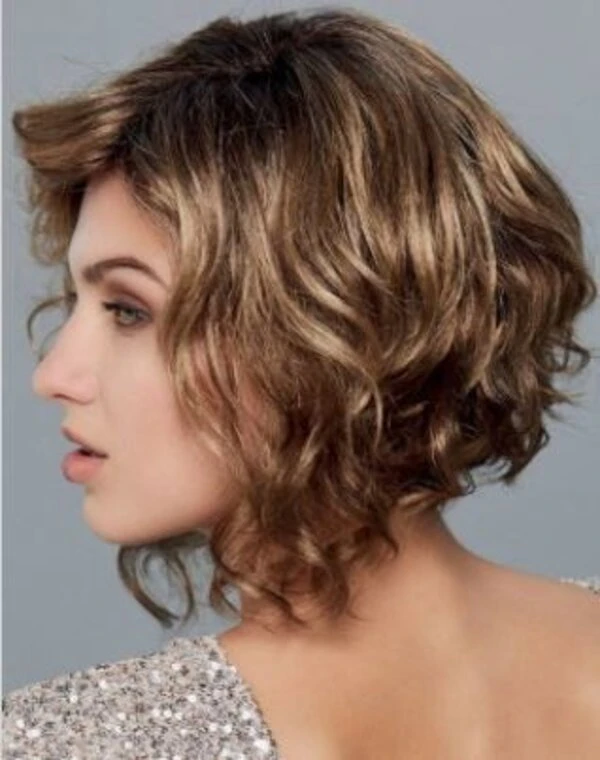 Halflange synthetische pruik met krullen van het merk Gisela Mayer.