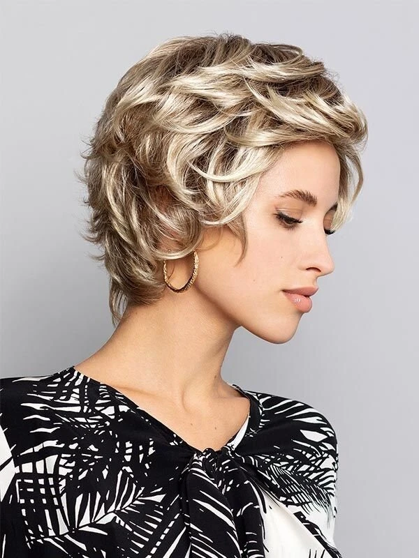 Het model Wind Mono Lace Large van het merk Gisela Mayer is een kort synthetisch haarwerk met slag voor een hoofdomtrek van 57-59 cm.