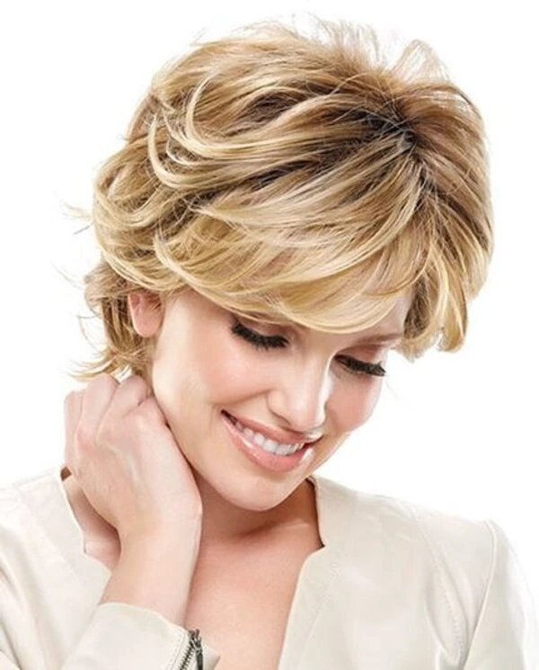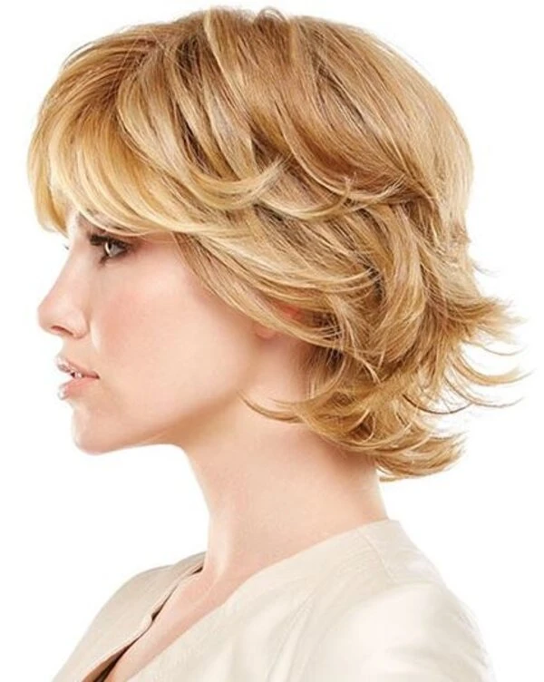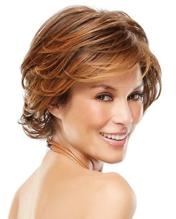Vlotte synthetische pruik met hittebestendige vezel. Deze pruik heeft een lace front muts met monofilament.