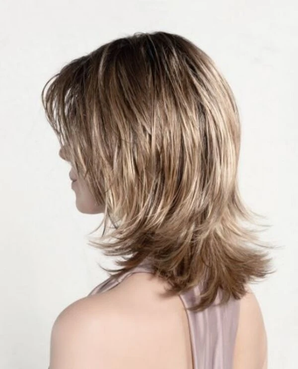 Ferrare mono part van het merk Modixx is een halflang synthetisch haarwerk. De kleur van het model is berstein rooted.