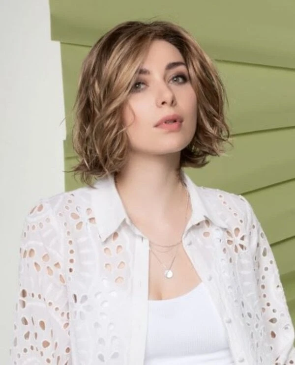 Nola Mono Part van Modixx is een halflang synthetisch haarwerk met beach waves. De muts heeft een lace front + gedeelte monofilament. Kleur van het model is bernstein multi rooted.